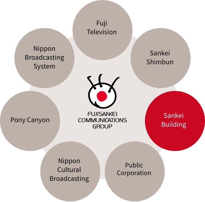 Fuji Media Holdings, Inc. with its broadcasting business as its core is a holding company that operates 3 business domains: media content, urban development/tourism, and other businesses. Sankei Building is an "urban development/tourism" group engaged in developing and operating real-estate such as office buildings, residential properties, hotels, etc. The company will generate added value from various facets of businesses through content strength and media development strength that only can be provided by a media related developer.